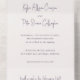 Mariage élégant tout en une invitation avec un design simple et classique avec vos noms dans un script moderne et vos détails de l'événement dans une combinaison de serif traditionnel et de polices italiques.