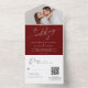 Script moderne Bourgogne Rouge Photo QR Code Mariage All in One Invitation
