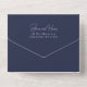 Conçu dans un souci de commodité et de budget, ce faire-part de mariage bleu marine tout-en-un, incluant une carte RSVP, simplifie non seulement le processus, mais vous aide également à économiser de l'argent. Entièrement personnalisable, il permet la personnalisation de chaque détail, capturant l'essence de votre mariage. Montrez une belle photo du couple avec une combinaison de texte moderne et de texte script pour un charme intemporel. Découvrez la commodité, le contact personnel et la rentabilité de cette invitation tout-en-un, préparant le terrain pour une journée de mariage inoubliable remplie d'amour, de joie et de moments chéris.