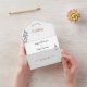 Cette invitation All-In-One est un moyen unique et facile de donner toutes les informations nécessaires pour assister à votre mariage. Tout ce que vous avez à faire est de plier la carte aux zones perforées et sceller le rabat arrière avec les trois autocollants clairs inclus, et le courrier. Tout ce que vos invités ont à faire est de déchirer la paix du fond où se trouve la réponse et de la déposer dans le courrier pour vous la renvoyer. Vos invités peuvent garder le dessus.