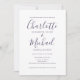 Doté de noms de style signature, cet élégant faire-part de mariage violet et blanc peut être personnalisé avec toutes vos informations spéciales sur le jour de mariage au verso, y compris votre RSVP, l'hébergement et des détails supplémentaires. Conçu par Thisisnotme©