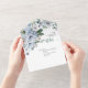 Élégante invitation à un mariage d'hiver fleuri et fleuri avec un bouquet de fleurs gris et bleu glacé et une végétation ondulée. Veuillez me contacter pour toute aide sur la personnalisation ou si vous avez besoin d'un autre produit avec ce design.