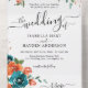 Invitation Tout En Un Turquoise Burnt Orange Rust Fleurs Mariage rustiqu