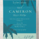 Le tout dans un faire-part de mariage profond cyan et vert menthe avec des fontes élégantes et les silhouettes de palmiers. Parfait tout en un faire-part de mariage pour les mariages de plage, les mariages de destination.