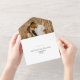 Créez une expérience d'invitation transparente et sophistiquée avec ce faire-part de mariage photo tout-en-un et cette carte RSVP. Dotée d'un design photographique plein de coeur, cette invitation présente magnifiquement votre histoire d'amour tout en invitant les invités à se joindre à votre célébration de manière chaleureuse et personnelle. La typographie élégante recouvre la photo, mettant en évidence vos noms et les détails mariages essentiels. La carte RSVP perforée jointe assure un processus de réponse pratique et simplifié, ce qui facilite la réponse de vos invités. Parfait pour donner le ton de votre journée spéciale, ce design vous permet d'ajouter votre propre photo et des détails personnalisés, en faisant un gardien unique pour votre célébration mariage.