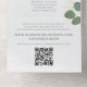 Ce design comprend un code QR vert moderne et économique, avec une réponse rsvp de site web moderne, avec un feuillage vert feuille eucalyptus, une réponse minimale de l'invité via le site, une police de script de typographie simple à la mode, une esperluette de calligraphie design branchée, un modèle d'invitation économique, une adresse web de mariage de détails, une réponse de code QR scannable, une réponse via le code de site web