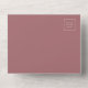 Le bord gauche de cette élégante faire-part de mariage tout-en-un moderne et RSVP est doté d'une bordure en aquarelle rose vif, ornée d'une parties scintillant en faux or. Le texte personnalisable combine écriture manuscrite, copperplate et polices italiques sur un rose profondément poussiéreux arrière - plan. L'adresse de retour apparaît sur le volet extérieur et sur le côté arrière de la carte RSVP détachable en texte brut sur un rose solide poussiéreux.