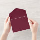 Invités d'Invitations à votre prochain mariage avec une Invitation à un mariage tout en un vin. Le design Invitation présente une floraison feutrée élégante avec un arrière - plan coloré assorti avec une carte de réponse perforée. Personnalisez avec les noms du marié et de la mariée ainsi que la date et l'emplacement du mariage. Papier à lettres mariage supplémentaire disponible avec cette conception aussi.