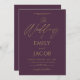 Annoncez votre grand jour avec tout cela dans une invitation de script de mariage en or violet prune. Doté d'un riche arrière - plan violet de prune, d'une élégante typographie dorée et d'un aménagement moderne, cet aménagement est parfait pour les mariages de soirée romantiques, les fêtes d'automne ou d'hiver, et les couples à la recherche d'un style papeterie sophistiqué. Customisez avec vos coordonnées de mariage pour un souvenir intemporel.