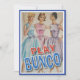Retro vintage style kitschy invitation Bunco. Play Bunco est amusant et l'invitation parfaite à l'invitation les dames de venir jouer Bunco. Trois poupées de style vintage rétro sont toutes habillées pour jouer à Bunco.