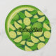Du côté avant. Tranches de chaux et feuilles. Motif sans couture. Couleur arrière - plan personnalisée. Texte personnalisé. Côté arrière : tranche ronde d'arrière - plan de chaux. Champs de texte personnalisés pour les informations sur les événements.