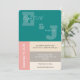 This modern city wedding design features a clean color block design created for contemporary and urban celebrations. The minimalist layout combines refined typography with a carefully balanced palette of transformative teal, soft champagne, dusty coral, and warm gray, delivering a stylish and elegant look.