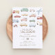 Invitations amis et famille pour fêter l'anniversaire de votre petit avec cette invitation thématique transport, avec voitures, camions, véhicules de construction, et plus !