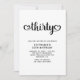 La typographie "Trente" utilise une police de caractères manuscrite moderne mignonne avec des swashes de coeur pour son 30e anniversaire. Vous pouvez customiser la couleur calligraphie noire, ou la couleur arrière - plan blanche minimaliste. D'autres options d'étape sont disponibles pour les invitations. Si vous souhaitez que la conception de la typographie pour une autre année d'anniversaire, envoyez une demande au créateur à l'aide du système de messagerie. Vous pouvez ajouter une photo au dos.