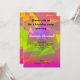 Une composition abstraite intéressante. Triangles géométriques et rectangles en couleurs d'un jeu de couleurs cool des années soixante. Vert citron vert, rose chaud, violet royal, orange mandarine, et plus. Ces formes se balancent dans toutes les directions donnant une sensation de mouvement et de mouvement. Un morceau amusant et psychédélique. Personnalisez avec les détails de votre fête d'anniversaire.