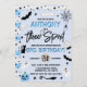Ces invitations amusantes et élégantes sont parfaites pour tous ceux qui célèbrent un 3ème anniversaire cet Halloween. Le design présente tout éffrayant d'un chat noir avec des chauves-souris volantes à une toile d'araignée, des fantômes, un brocante aux sorcières, un crâne et un os, une boule de verre magique et un citrouille jack-o-lanterne tout en noir, blanc et des tons de bleu. Le libellé modèle est facile à personnaliser et vos invités de fête seront dans une peur quand ils reçoivent ces invitations dans le courrier!