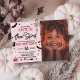 Ces invitations amusantes et élégantes sont parfaites pour tous ceux qui célèbrent un 3ème anniversaire cet Halloween. Le design présente tout éffrayant d'un chat noir avec des chauves-souris volantes à une toile d'araignée, des fantômes, un brostick aux sorcières, un crâne et un os, une boule de verre magique et un citrouille jack-o-lanterne tout en noir, blanc et des tons de rose. La photo et le libellé du modèle sont faciles à personnaliser et les invités de votre fête seront dans une peur quand ils reçoivent ces invitations dans le courrier!