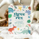 Invitation Trois Rex Blue Boy Dinosaur Boho 3e anniversaire