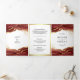 Invitation Trois Volets Burgundy Gold Abstrait Enk QR Code Mariage