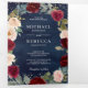 Invitation Trois Volets Burgundy Pêcher Floral QR Code Marine Mariage bleu