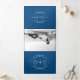 Invitation Trois Volets Cadre blanc élégant, initiales mariage bleu classi