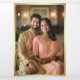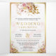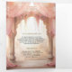 Impressionnez vos invités avec cette élégante invitation de mariage tout en un Indien avec de belles arches décorées de rideaux et de fleurs roses. Typographie or moderne avec QR Code pour RSVP en ligne. Ajoutez simplement les détails de votre événement sur ce modèle facile à utiliser et ornez cette carte avec votre photo préférée pour en faire une invitation unique.