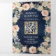 Invitation Trois Volets Dusty Pêche Floral Marine bleu QR Code Mariage
