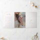 Elégante invitation de mariage triplé avec un design classique avec votre monogramme dans une police de script avec vos noms et détails dans une police de serif traditionnelle.