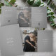 Moderne simple typographie minimaliste tendance gris gris formel tout en un faire-part de mariage budget modèle avec 2 photos, rsvp et détails avec numérisation des codes QR avec un script de calligraphie chic tendance et une superposition sombre. ++++++++++++++ Facile à personnaliser avec une ou deux photos personnalisées (vous pouvez télécharger la même photo sur les deux côtés) et des informations sur les invités des deux côtés ! L'invitation convient aux mariages classiques et contemporains.