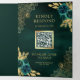 Invitation Trois Volets Emerald Green Floral Gold Lace QR Code Mariage