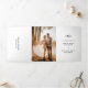 Faire-part de mariage tri-pliable moderne et contemporain avec un design simple et minimal avec votre trois monogramme initial avec vos noms et date mariage en caractères gras. Le dos a votre photo préférée. Cette faire-part de mariage minimaliste en noir et blanc peut être customisée à n'importe quelle couleur que vous choisissiez dans l'outil de montage de conception.