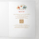 Capturez les coeurs avec cette élégante invitation photo mariage à trois fleur sauvage d'aquarelle - un design compact, détaillé et enchanteur qui dévoile votre histoire d'amour avec une beauté saisonnière. Ouvrez trois panneaux superbement coordonnés conçus pour guider vos invités à travers chaque partie de votre célébration. Au centre, votre faire-part de mariage principale est délicatement encadrée par une luxuriante exposition de fleurs sauvages de chute peints à la main en terre cuite, orange brûlé, jaune doré, turquoise profond, bleu marine, brun chaud et riche pourpre. Ces fleurs romantiques et moroses évoquent la chaleur et la richesse d'une prairie automnale — cosy, joyeuse et pleine d'amour. Le panneau intérieur gauche offre un espace généreux pour vos détails mariages essentiels — parfait pour inclure des informations de réception, des hébergements, des indications ou même une note sincère à vos invités. Sur la droite, une disposition propre et élégante présente votre section RSVP, avec un espace pour un code QR scannable pour des réponses numériques rapides et faciles. La couverture avant est ornée du même charmant motif fleur sauvage, donnant le ton d'une élégance naturelle et d'un charme rustique. Au centre se trouve une photo du couple, ce qui rend cette invitation profondément personnelle — un souvenir que vos invités chériront bien après la journée passée. Que vous planifiez une cérémonie à la campagne, une fête du jardin inspirée par la moisson ou un mariage bohème enveloppé dans les couleurs de l'automne, cette invitation triplée offre à la fois une fonction pratique et une beauté sincère — le tout dans une pièce gracieuse et facile à envoyer.