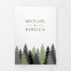 Éblouissez vos invités avec cet élégant faire-part de mariage à thème forestier avec de beaux pins et une typographie moderne contre un arrière - plan blanc. Ajoutez simplement les détails de votre événement sur ce modèle facile à utiliser et ornez cette carte avec vos photos préférées pour en faire une invitation unique.
