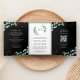 Invitation Trois Volets Mariage de code QR noir Eucalyptus or vert