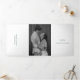 Faire-part de mariage triplée vert forêt/vert émeraude de style classique avec un design simple et minimal avec votre monogramme en haut et vos détails de l'événement entouré d'une double bordure. Les fontes alternent entre un script élégant, une fonte serif traditionnelle et minimaliste sans serif. Le panneau de gauche est votre carte d'ouverture et le panneau de droite est votre carte postale RSVP. Le dos a votre photo préférée. Tout cela en un triplement invitation est parfait pour un mariage formel.