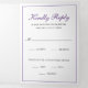 Traditionnel et élégant tout en un modèle faire-part de mariage avec carte rsvp et carte d'enceinte attachée, rendant cette suite d'invitation pratique et économique. Le faire-part de mariage a votre deux monogramme initial et vos noms dans une élégante calligraphie royale violet à l'intérieur d'une mince bordure avec votre photo préférée à l'arrière. La carte postale RSVP a votre adresse postale au dos et vos invités vous coupent et vous renvoient un courriel. REMARQUE : L'affranchissement de première classe est obligatoire pour la carte postale RSVP. Les timbres de carte postale ne suffiront pas en raison de la taille. Ce design classique est parfait pour un mariage formel à l'automne/automne.