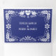 Invitation Trois Volets Papier bleu foncé picado inséparables mariage