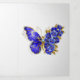 Bijoux, bleu, saphir, papillon aux fleurs pétillantes avec aile décorée de bleu, fleurs précieuses avec feuilles d'or sur arrière - plan blanc.