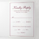 Traditionnel et élégant tout en un modèle faire-part de mariage avec carte rsvp et carte d'enceinte attachée, rendant cette suite d'invitation pratique et économique. Le faire-part de mariage a votre deux monogramme initial et vos noms dans une calligraphie élégante à l'intérieur d'une mince bordure avec votre photo préférée à l'arrière. Les éléments de conception sont en bordeaux et peuvent être changés en n'importe quelle couleur que vous souhaitez dans l'outil d'édition de conception. La carte postale RSVP a votre adresse postale au dos et vos invités vous coupent et vous renvoient un courriel. REMARQUE : L'affranchissement de première classe est obligatoire pour la carte postale RSVP. Les timbres de carte postale ne suffiront pas en raison de la taille. Ce design classique noir et blanc est parfait pour un mariage formel. Les invitations tout-en-un sont pratiques et économiques.