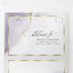 Aquarelle mauve et or doux marbré avec des reflets dorés brillants - chaque section surlignée d'une superposition encadrée d'or blanc pur, sur le centre est votre photo accentuée d'un cadre doré et derrière la simple couverture blanche pour un appel ésotérique une belle conception abstraite moderne pour un tout en une faire-part de mariage complète avec un choix de repas détachable pré-adressé rsvp pour vos invités à renvoyer facilement dans une seule faire-part de mariage -
