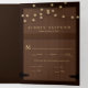 La Rustic Barn Wood Gold Calligraphy Elegant Wedding Tri-Fold Invitation est le parfait mélange de charme intemporel et d'élégance sophistiquée. Design avec un arrière - plan illustré en bois de grange, cette invitation dégage une atmosphère chaleureuse et rustique, rehaussée par la calligraphie dorée (effet numérique, pas de véritable feuille !) qui orne gracieusement la couverture et les fioritures. Des cordes de lumières ajoutent une lumière chaude au brun foncé de l'arrière - plan. Le design triplé offre un grand espace pour tous les détails mariages, y compris une section RSVP et des informations supplémentaires sur l'événement, le tout magnifiquement arrangé dans un agencement cohésif et élégant. Idéale pour les couples à la recherche d'une faire-part de mariage qui reflète à la fois leur amour pour la nature et leur désir d'élégance raffinée, cette invitation donne le ton d'une célébration vraiment mémorable.