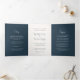 Elégante invitation de mariage triplée avec un design simple et classique avec vos noms dans un script moderne et vos détails de l'événement dans une combinaison de serif traditionnel et de polices italiques.
