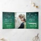 Faire-part de mariage photo triplé. Teintes vertes profondes Celestial Galaxy Night Sky Stars Mariage triplé faire-part de mariage avec deux photos, rsvp, et détails tout en une carte mariage.