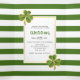 Moderne vert, rayures blanches et trèfle de trèfle irlandais faire-part de mariage. La couverture de ce design élégant présente un cadre blanc rond avec contour doré qui tient vos noms et une feuille shamrock verte. Les panneaux intérieurs comportent des cadres avec votre libellé et des feuilles de trèfle avec des bordures rayées tandis que le rabat intérieur extérieur comprend votre photo. Il conviendra parfaitement à un mariage de la Saint Patrick.