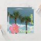Invitation à la douche du couple de plage tropicale avec palmiers, hibiscus rose corail et texte amusant et audacieux. Modifiez le texte au besoin.