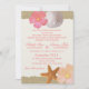 Invitation de mariage de plage avec un vintage torréfaction et l'aspect rustique de burlap tout accentué avec hibiscus, dollars de sable et étoiles de mer, personnalisez le texte et les polices pour convenir à votre style.