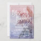 Ce brunch tropical au coucher du soleil et une carte d'invitation à la bulle sont parfaits pour une destination ou une douche nuptiale sur la plage. L'aménagement comprend un superbe coucher de soleil couleur rose violet et bleu avec un palmier soufflant dans la brise.