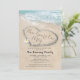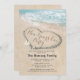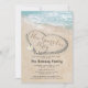 Tropical beach thème la nouvelle année de fête invitation avec le littoral bleu de l'océan, un coeur sculpté dans le sable, et un modèle de célébration de la nouvelle année qui est facile à personnaliser.