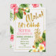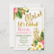 Recherche d'une invitation orientée tropicale de l'anniversaire de la fille audacieuse et colorée ? Les caractéristiques de conception ce d'invitation un ananas d'or de faux et quelques feuillage et fleurs d'aquarelle sur une aquarelle texturisée empaquettent l'arrière - plan d'image. J'ai également employé quelques textures de feuille d'or de faux sur le texte de style de brosse.