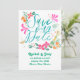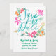 Cette carte de "Save the Date" présente un design aquarelle vibrant et ludique. Le texte calligraphié à la main est écrit en bleu sarcelle gras, entouré d'éléments festifs tels que des fleurs roses vives, des fruits orange, une bouteille de champagne et un verre à cocktail, le tout peint dans des couleurs vives. Les accents floraux et tropicaux, combinés à l'imagerie de célébration, donnent à cette carte une atmosphère amusante et joyeuse - parfaite pour les couples qui prévoient une célébration de mariage animée et enjouée.